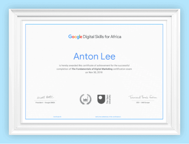 Google Digital Garage provides 160 online courses to learn digital skills on a wide variety of topics. Most notably, the course Fundamentals of Digital Marketing offered by Google includes a free certificate of completion. The course includes 26 modules, each with their own video and quiz.