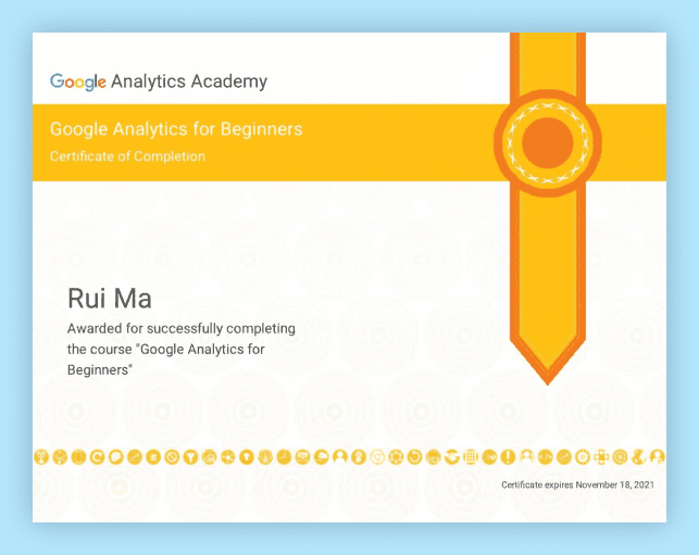 - Google Analytics Certification from Google via Skillshop ★★★★☆(1)